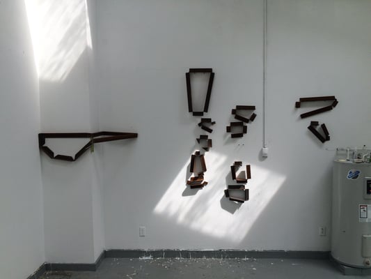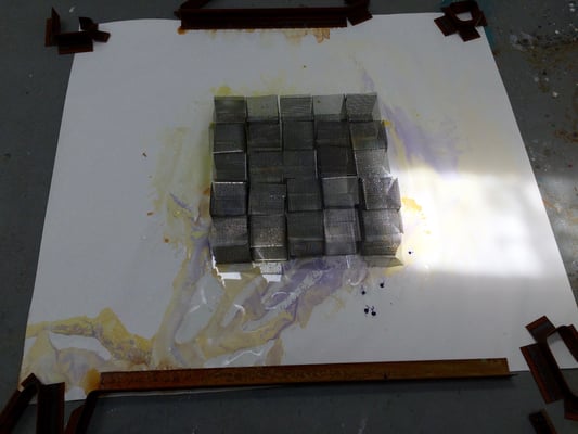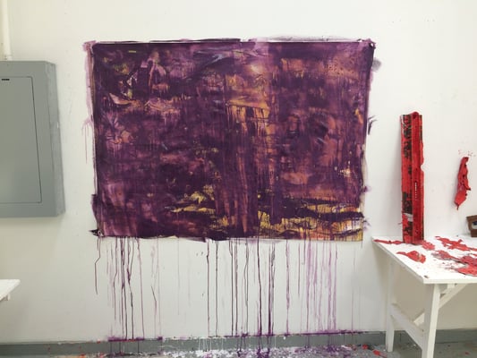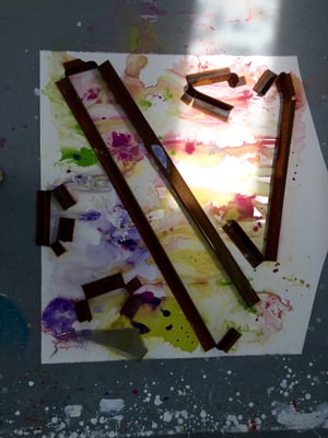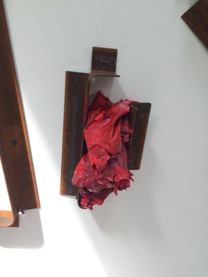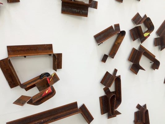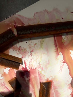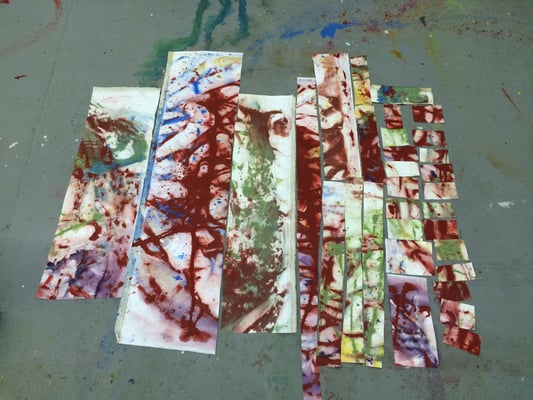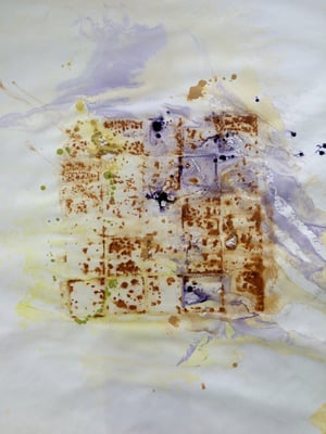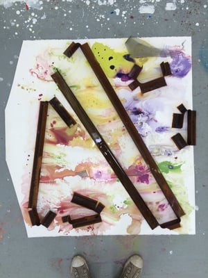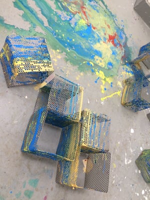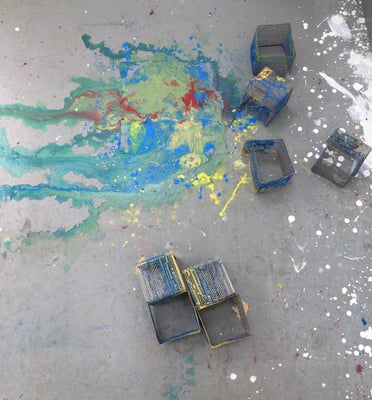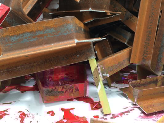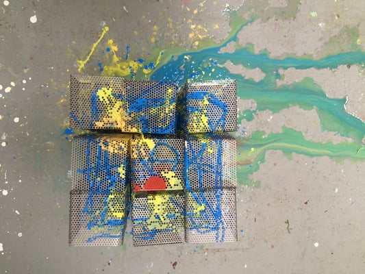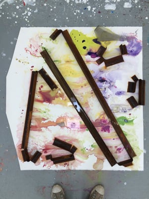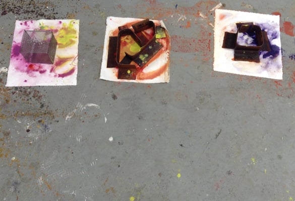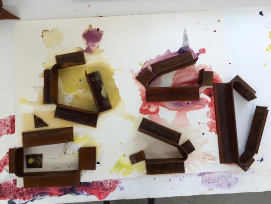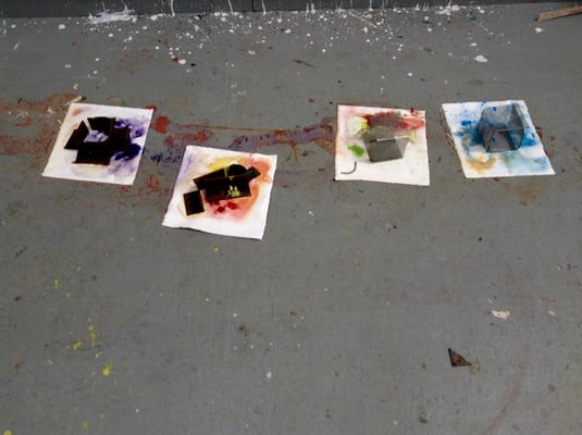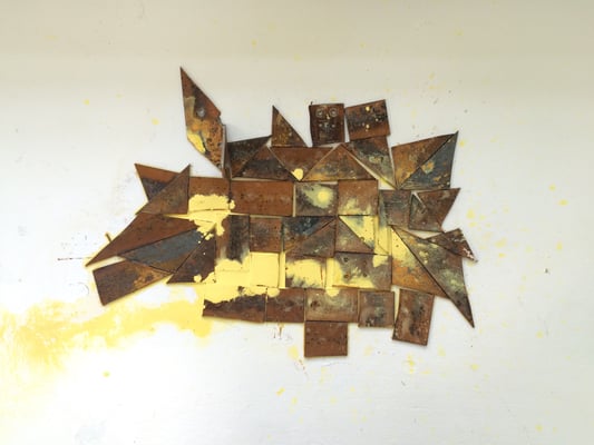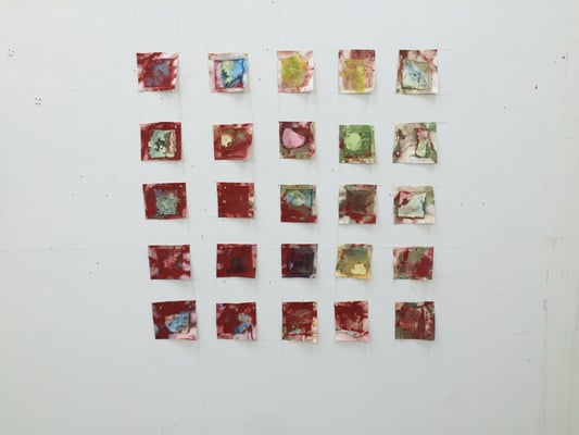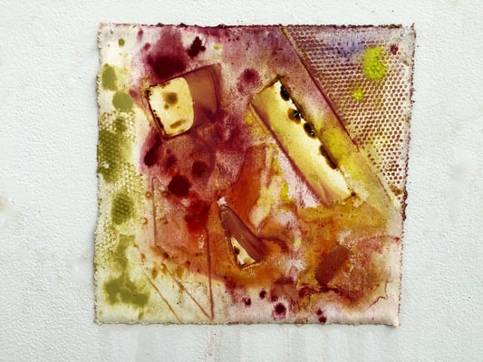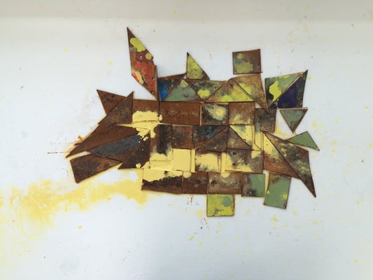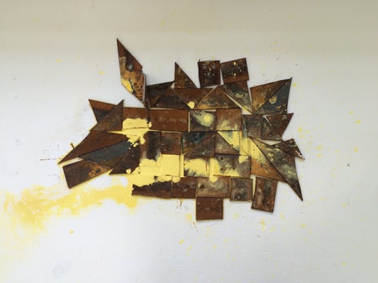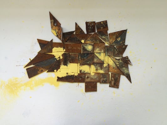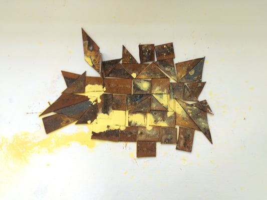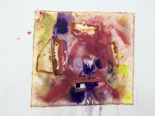 Below are some of the experiments created as an artist in residence at Yaddo, May - June 2016. The Yaddo 2016 residency mandate was to surprise myself. Most of the projects and bodies of work undertaken up until that point were monochrome, found, muted color mostly, site specific and/or history focused. The conceptual rigor of connecting to a site or historic body was always the key driver. This body of work would be different. It was strictly experimental and for FUN. This had never happened before. There were no rules, or for that matter, goals. Each day set up new puddles or twists of metal cut up in the studio and then embedded in the paint. Each twist led away from knowing. The Yaddo experiments are a complete body of work. In seven weeks, I completed some one hundred plus works (they still have not all been counted) that I do not know. They know me.