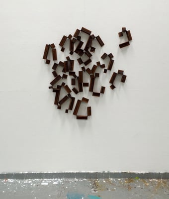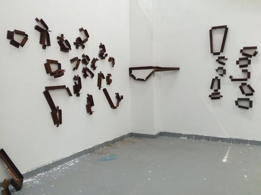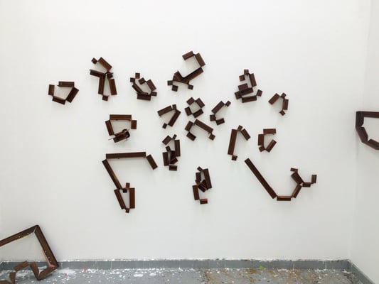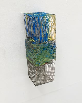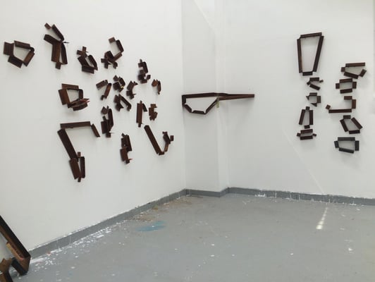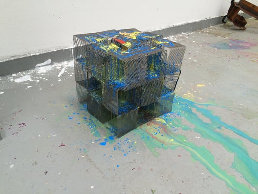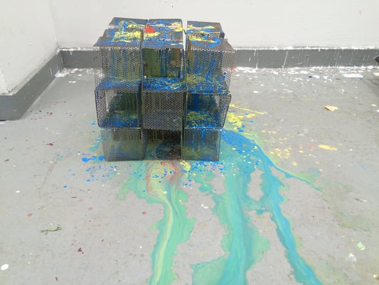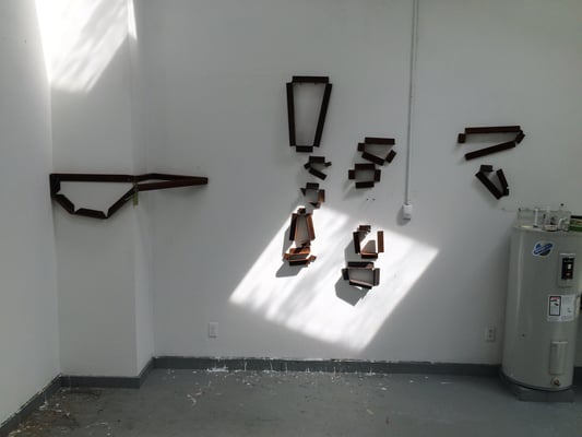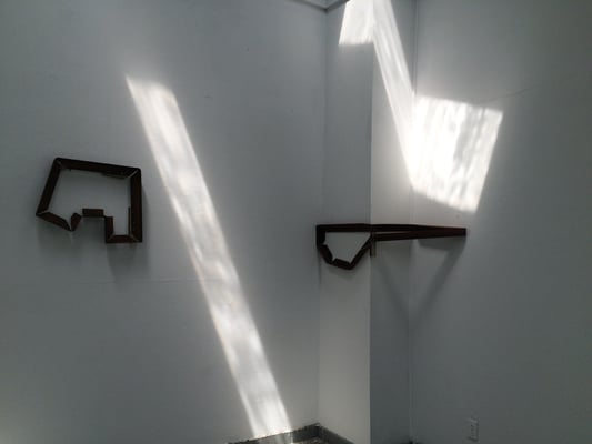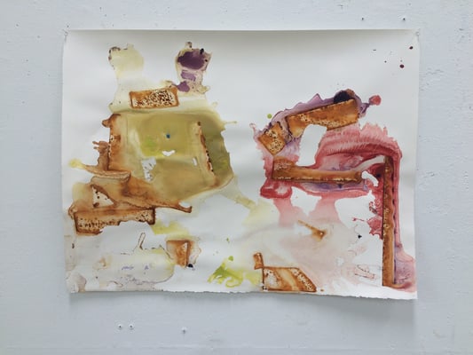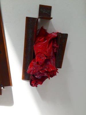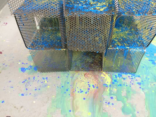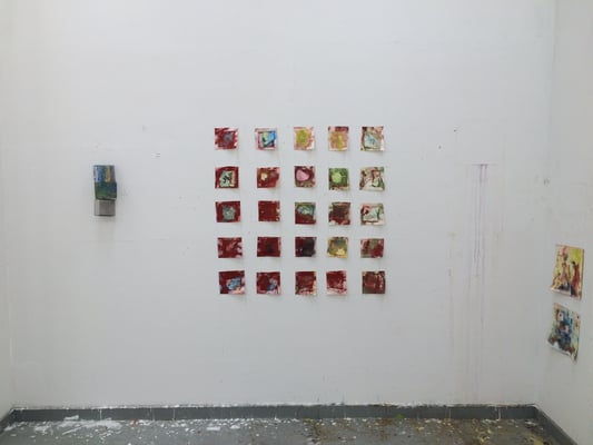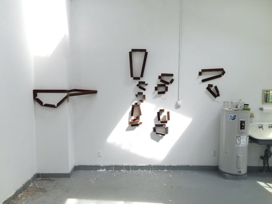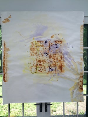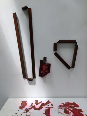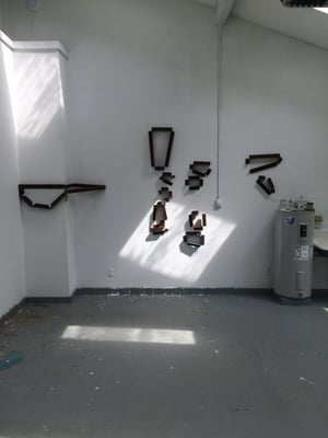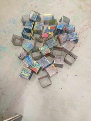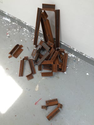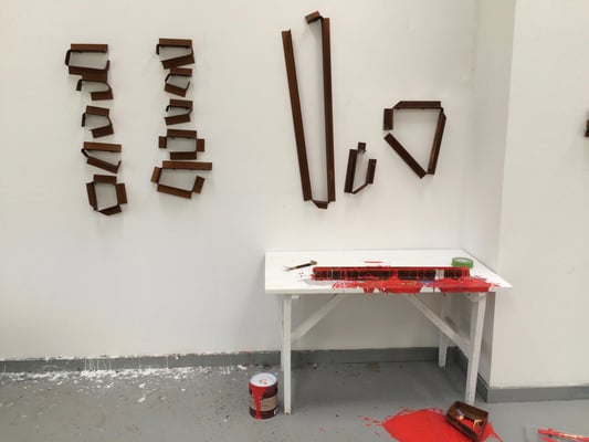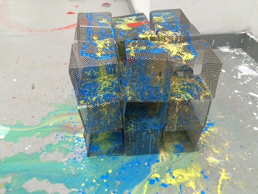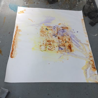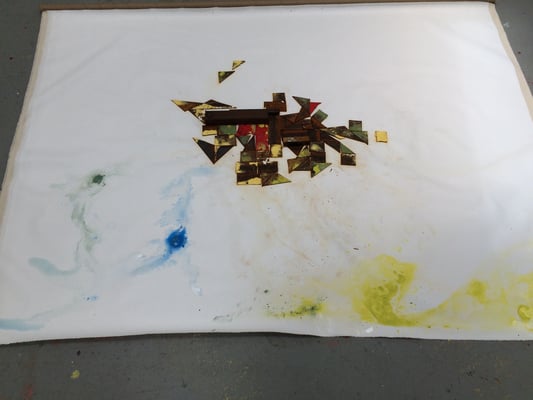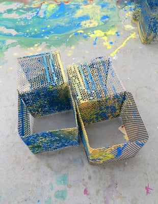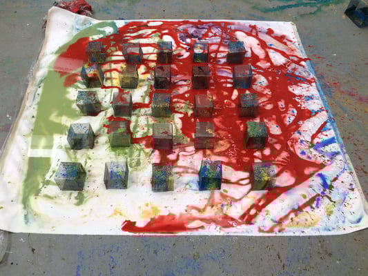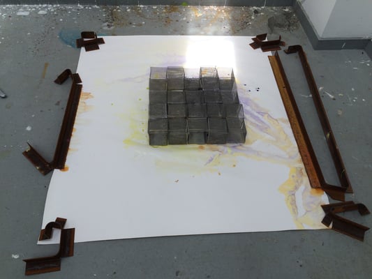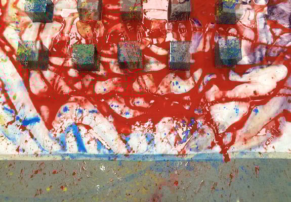 Below are some of the experiments created as an artist in residence at Yaddo, May - June 2016. The Yaddo 2016 residency mandate was to surprise myself. Most of the projects and bodies of work undertaken up until that point were monochrome, found, muted color mostly, site specific and/or history focused. The conceptual rigor of connecting to a site or historic body was always the key driver. This body of work would be different. It was strictly experimental and for FUN. This had never happened before. There were no rules, or for that matter, goals. Each day set up new puddles or twists of metal cut up in the studio and then embedded in the paint. Each twist led away from knowing. The Yaddo experiments are a complete body of work. In seven weeks, I completed some one hundred plus works (they still have not all been counted) that I do not know. They know me.